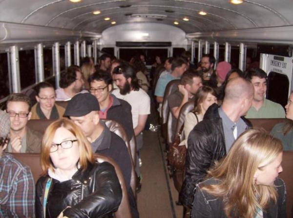 The night was still fairly young yet throughout the crowd I could hear the “I love you, man” bromance already ensuing, which indicated the average BAC of the bus was around 4 times the legal limit. Spontaneous group performances of Tiny Dancer and Teenage Wasteland broke out. The bus’ 7-watt speakers were pushed to their limit as they struggled to keep pace. Thankfully, nobody was inspired to do a pinball freestyle rap.