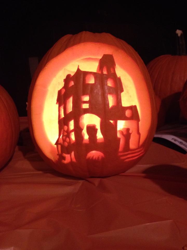 Local pinball operator Andy Kuntz carved this awesome Haunted House jack-o-lantern using nothing but Novus 3 and a can of freeze spray.